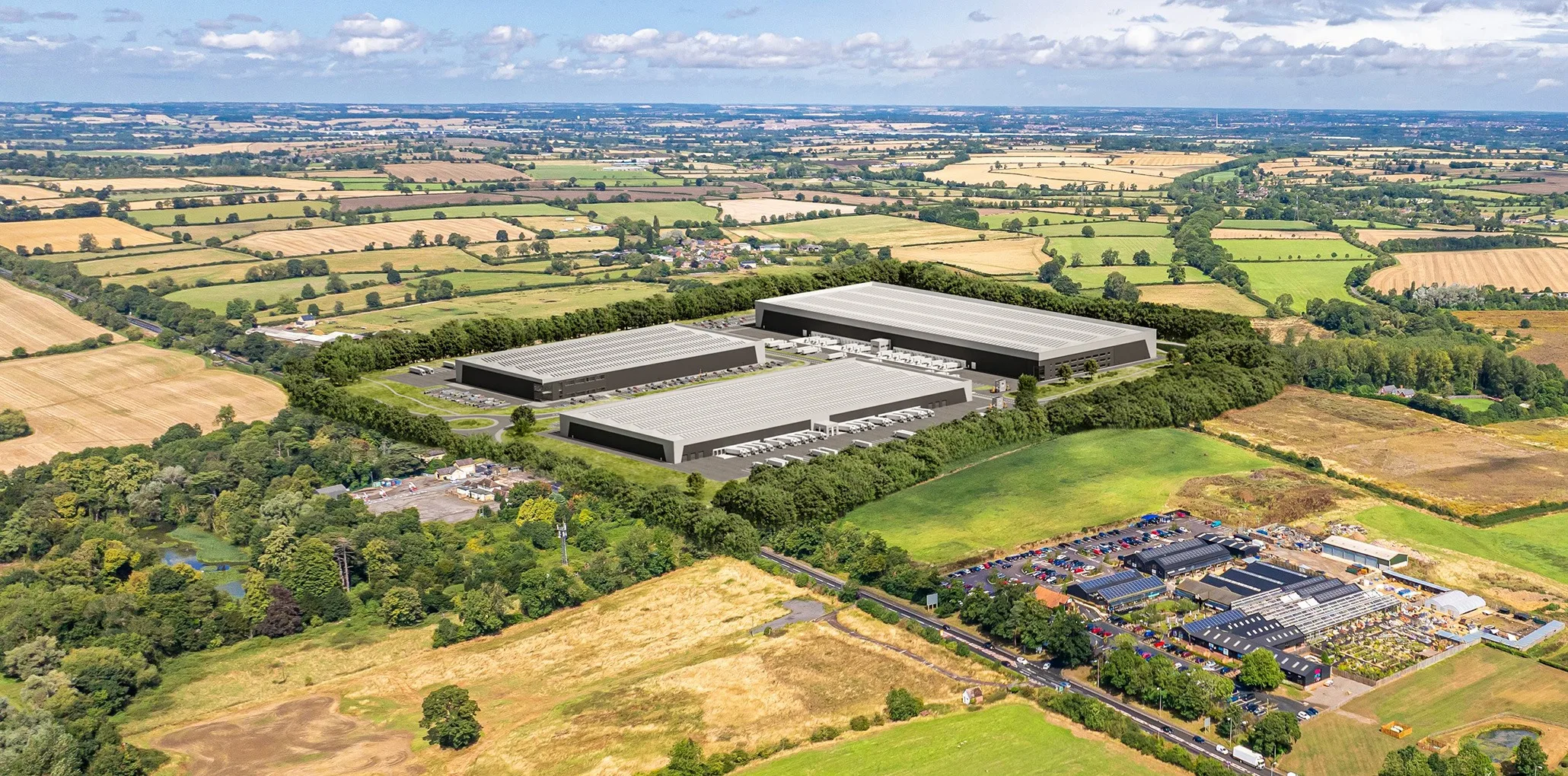 The first site, located in Northamptonshire, comprises approximately 80 acres and has recently received hybrid planning consent at appeal. The development will deliver approximately 1 million sq ft across three units of 223,269 sq ft, 361,724 sq ft, and 412,073 sq ft.